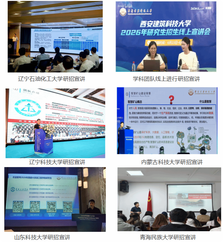 持续开展2026年研究生招生宣传工作。5月-9月期间,招生工作领导小组组长顾清华教授、副组长江松教授、各学科团队通过线上、线下的方式先后赴青海民族大学、山东科技大学、辽宁科技大学、西藏大学、内蒙古科技大学、辽宁石油化工大学6所高校开展研究生招生宣传。