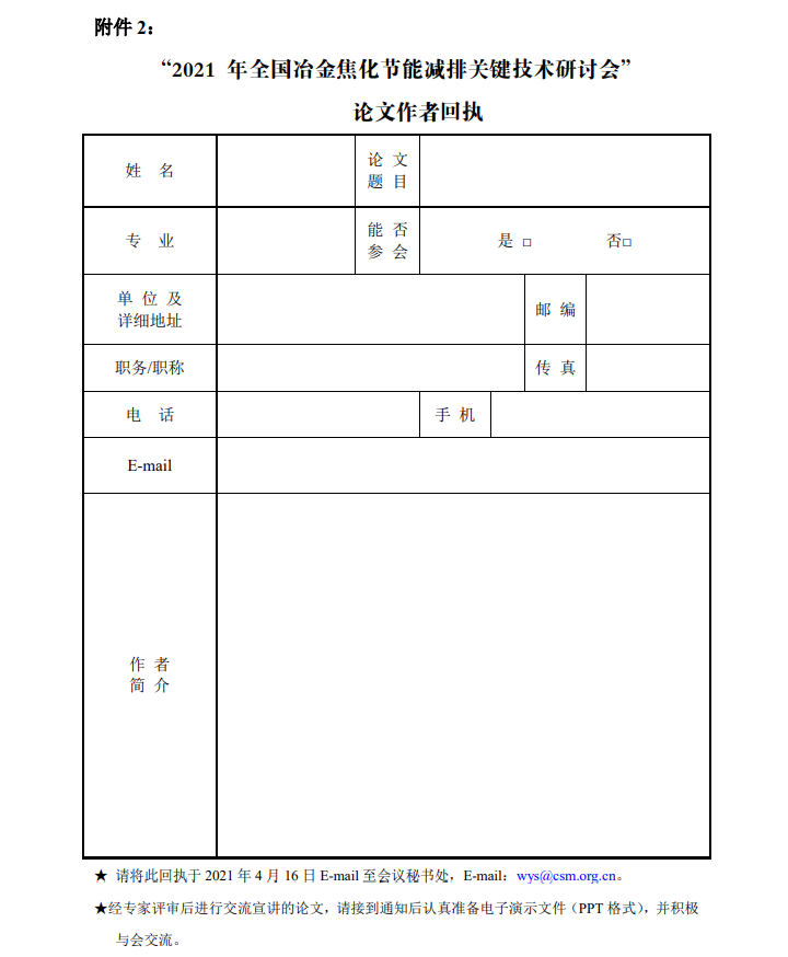 上一条:关于征集《钢铁行业CO2减排技术规范》参与单位的通知 下一条:中国金属学会关于“2021年全国高品质特殊钢生产技术研讨会暨中国金属学会特殊钢学术年会”的征文通知