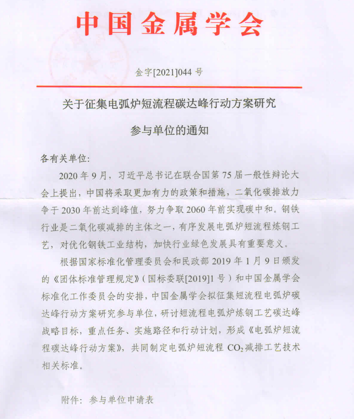 上一条:关于征集钢铁行业碳达峰行动方案研究参与单位的通知 下一条:关于征集《钢铁行业CO2减排技术规范》参与单位的通知